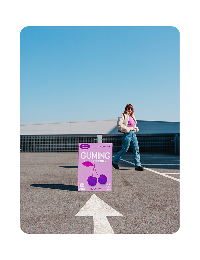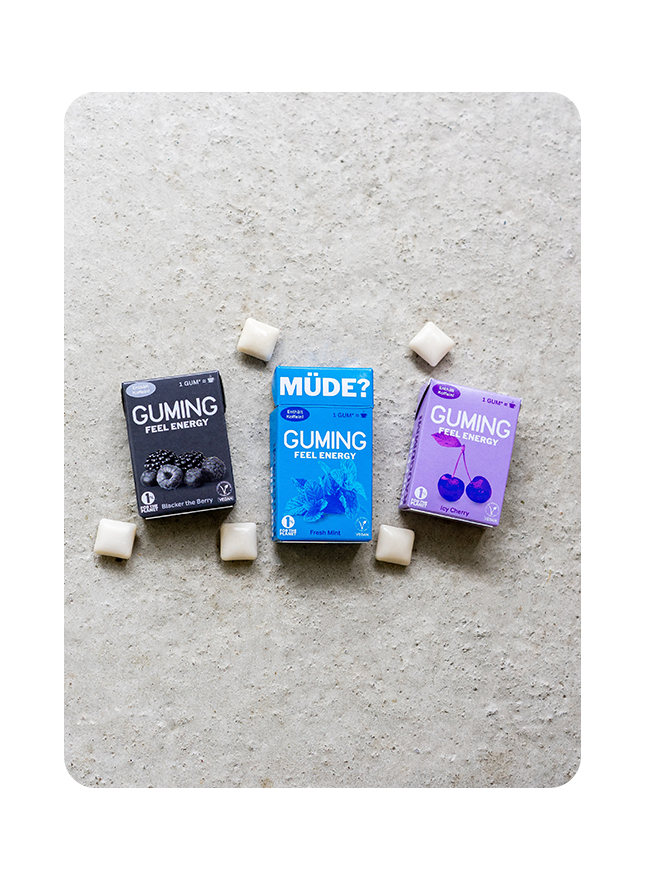 Das Koffein wird direkt durch die Mundschleimhaut aufgenommen und nicht über den Magen und die Verdauung wie bei Drinks oder Tabletten – das dauert lange und ein großer Teil der Wirkstoffe wird ohne Effekt ausgeschieden. Nicht so mit GUMING!